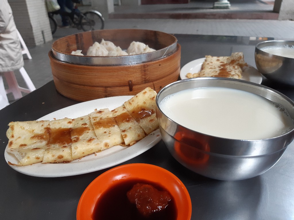 五湖豆漿的小籠包屬於薑味比較重的,皮薄餡多,沒有到超級好吃,但就是每次去都會點來吃。經典必點的是蛋餅,一定要加上店家自製的醬油膏,蛋餅口感薄脆,表面煎至微焦,蛋香味很濃,表現的恰到好處。這家是我從求學時期就吃到現在,數十年來的味道都一致,足見店家的功力深厚,天氣冷時再喝碗熱豆漿,就是一頓舒服的早餐。