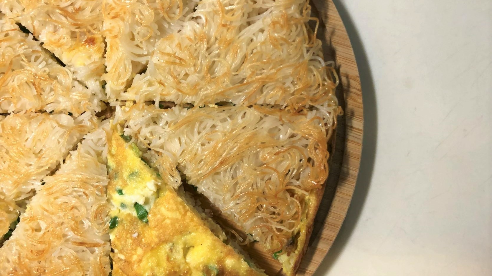 - 全部合體:用鍋鏟壓一下讓蛋液和麵體稍微密合,翻面續煎另一面麵線,可沿鍋邊再加點油,把麵線煎至酥脆金黃,分切成喜歡的形狀。任務完成,美味上桌。